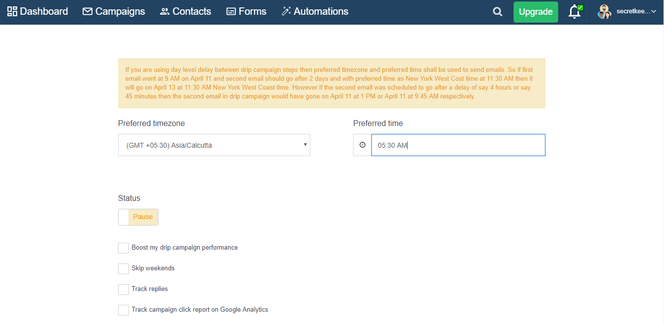 Track Replies: You can decide to track replies to your drip sequences. This can be used for outbound prospecting or better user engagement. You can further use automation rules to tag users who replied, send them a one-off email or start/stop a drip sequence