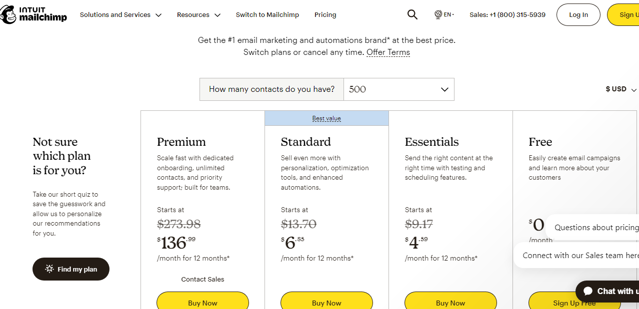 | Mailchimp | $51/month | $100/Month | $305/Month |
