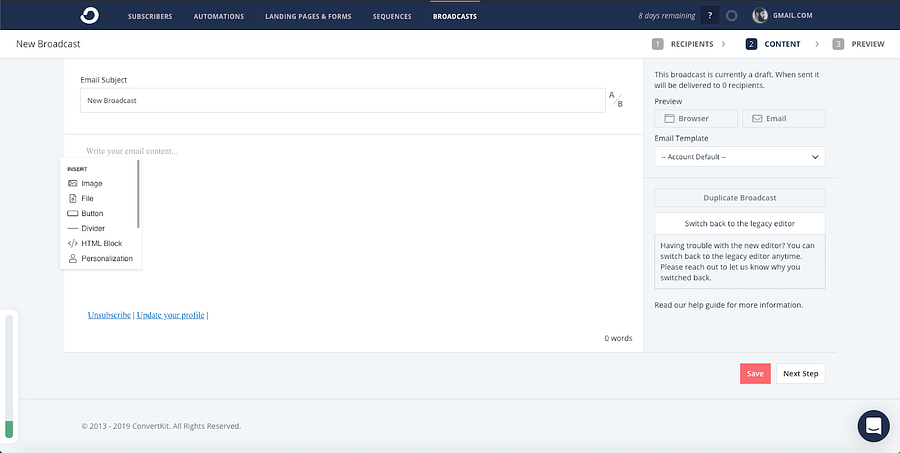 But ConvertKit is dropping a new email editor soon, and it is on beta right now. So you can go and use it. The way I felt about it was like Medium editor, and will even allow you to add HTML blocks on your emails, better late than never, I would say.