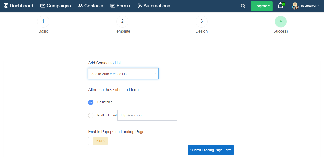 Next, you’ll reach the success page, where you can add your contact list and customize other options based on your needs.