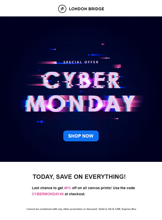 The Cyber Monday email subject lines should have clear and bold headlines highlighting the discounts and promotions that can prompt the user to open the email at least once. However, make sure you don't reveal everything in the subject line itself.