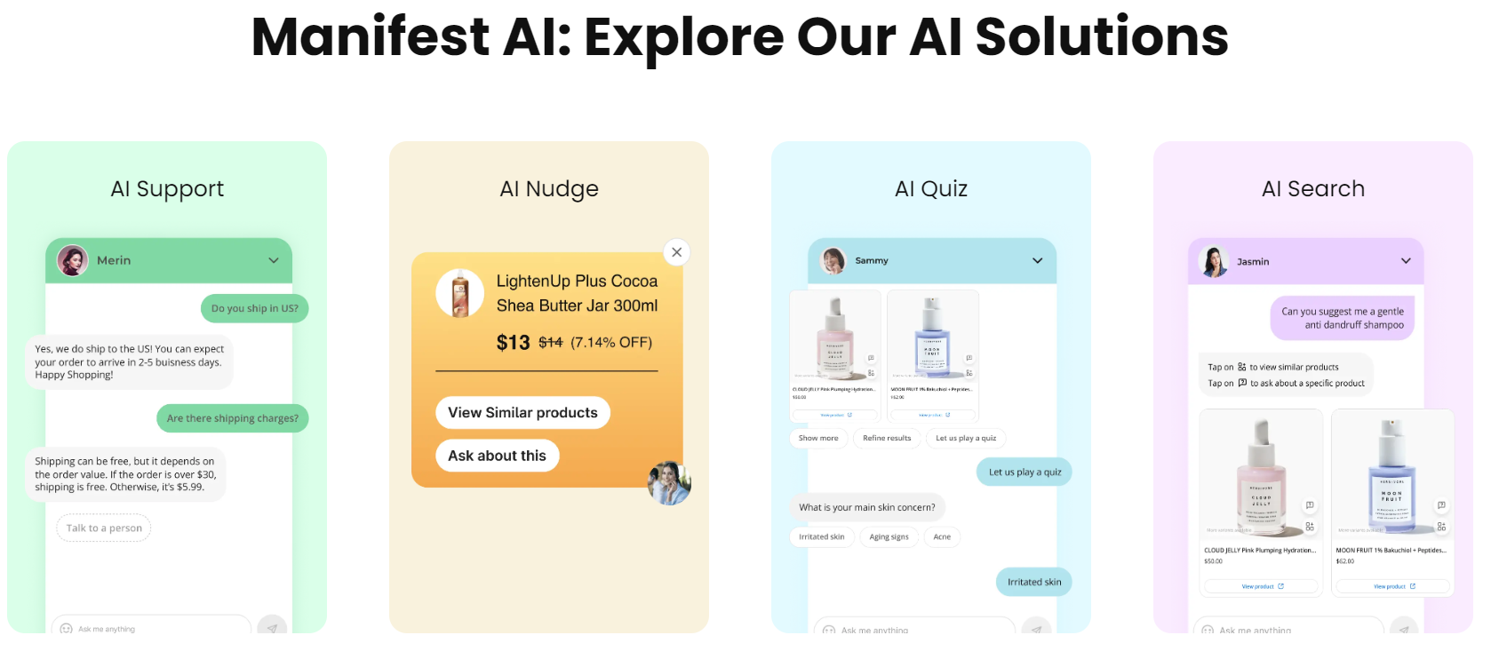 Manifest AI stands out as a GPT-powered AI shopping assistant for Shopify stores, designed to enhance the ecommerce experience with its suite of intelligent features. Here’s a concise overview of what makes Manifest AI invaluable for Shopify merchants: