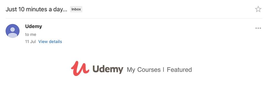 This Udemy email is a perfect example here. It has a catchy subject line, heading, useful information, and unique layout.