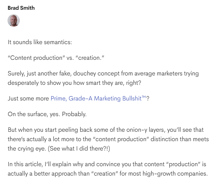As an example, take a look at a blog post from Wordable CEO Brad Smith. In this Wordable blog post, Smith gives off a light and playful tone that is consistent with the brand.
