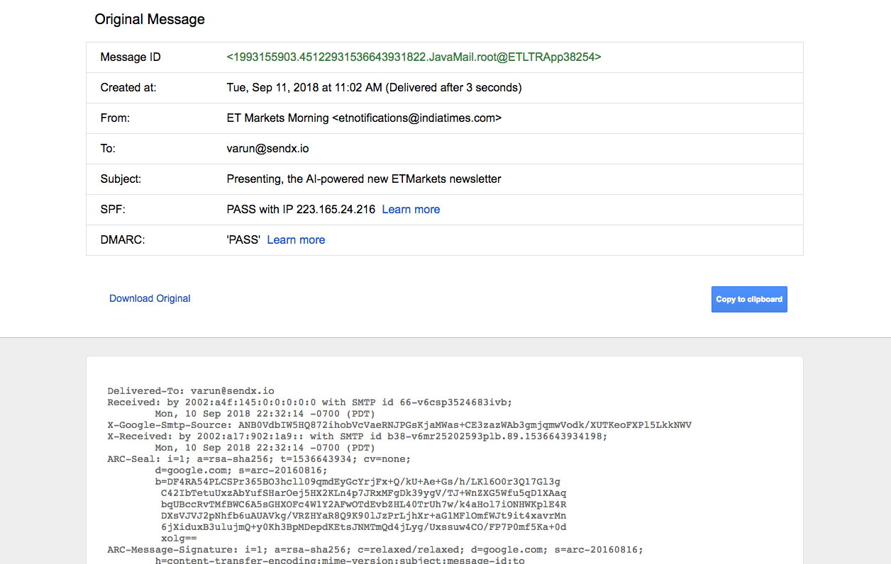 Besides the aforementioned ones, you can do a quick check on email authentication from your Gmail inbox itself. Follow the below two steps as shown in the screenshots: