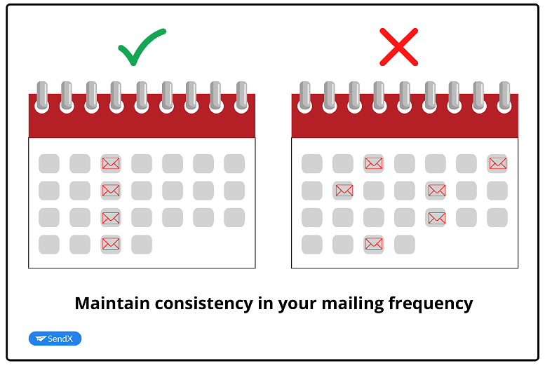 On the flip side, inconsistent sending pattern or dips & spikes in email sends may lead you being classified as a spammer.