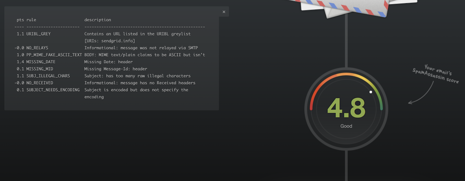 It will give you a score that can be zero or above that. Anything close to 5 or higher will most probably be marked as spam by your subscriber’s email providers.