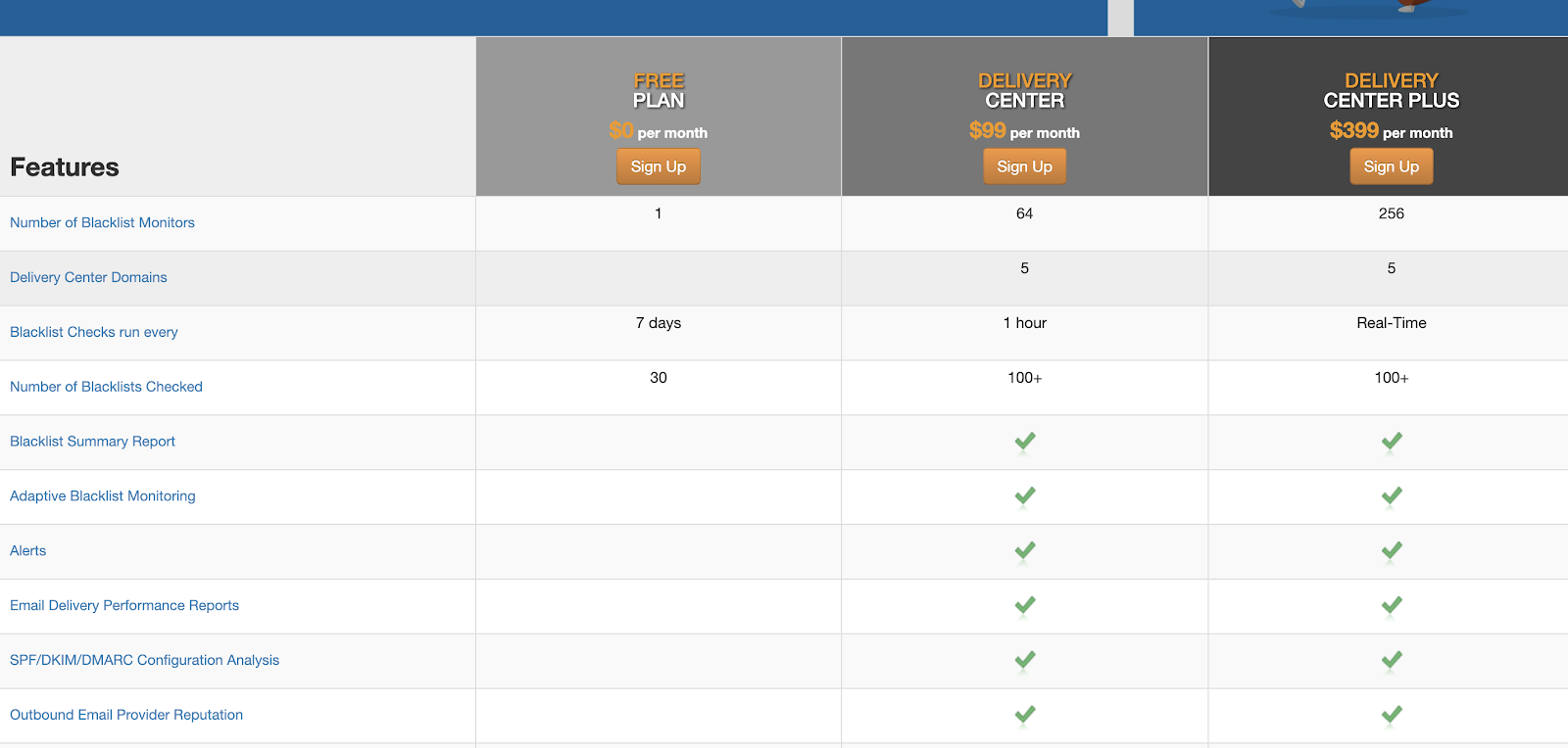 Paid users also get access to their dedicated teams to help you understand the causes for your blacklisting and what you need to do to improve your email configuration to avoid blacklisting in the future and improve your email delivery.