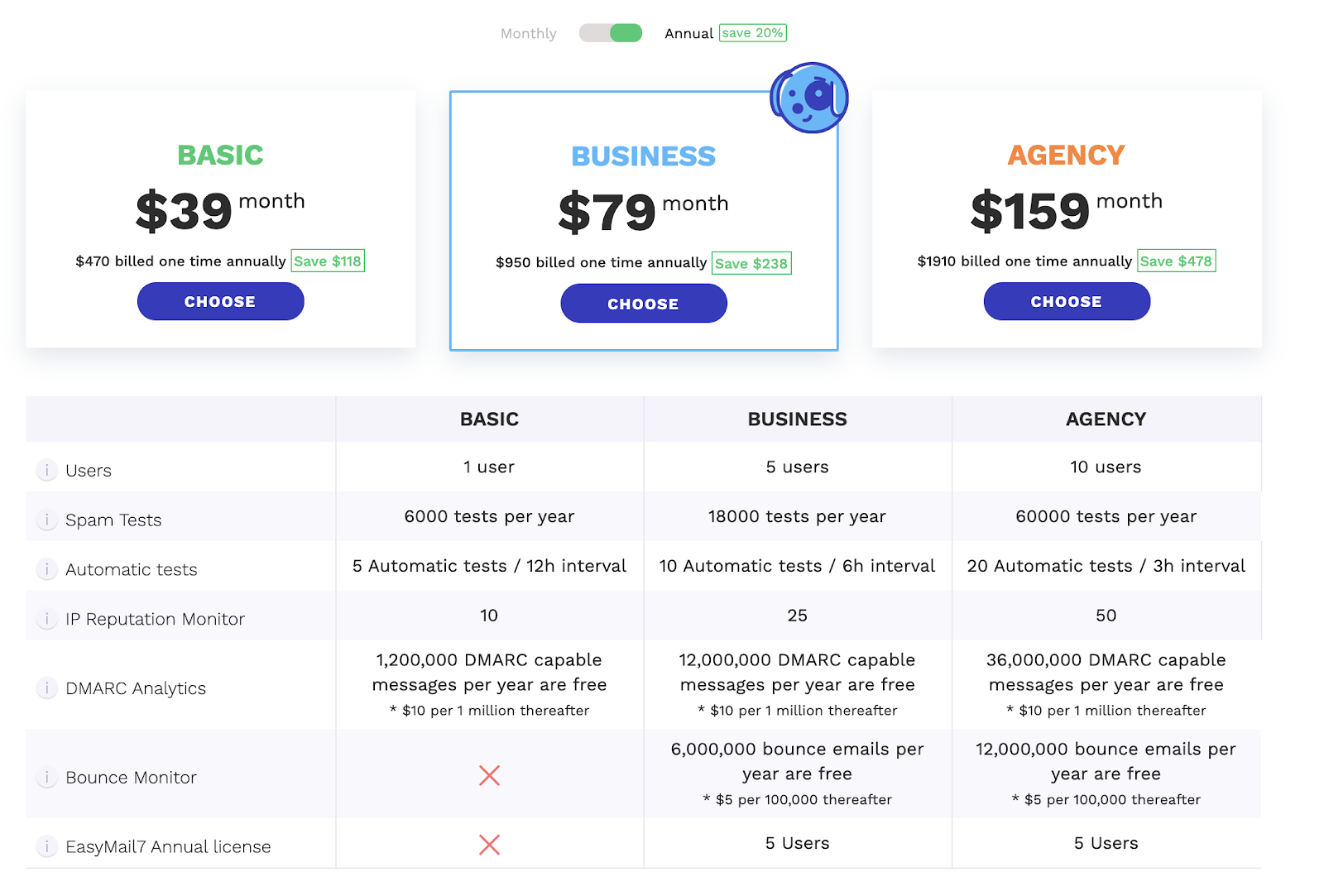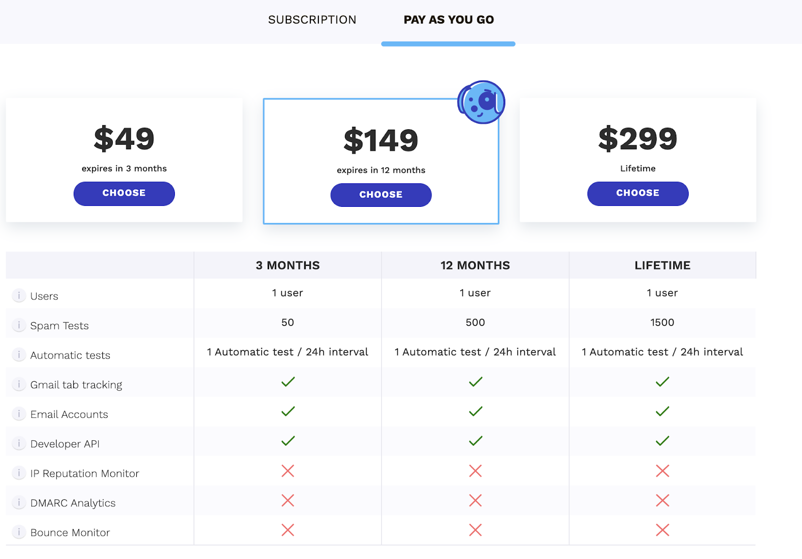 You can get a free trial which includes three free spam tests. After that, you will need to choose a paid plan to continue.