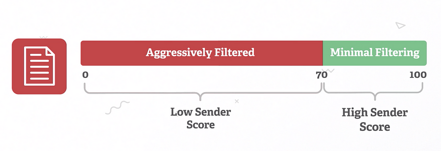 If your Sender Score is below 70, you need to fix your sender reputation. If it is between 70-80, then you should follow some more industry best practices on email deliverability. If it's above 80, you don't have to worry about anything.