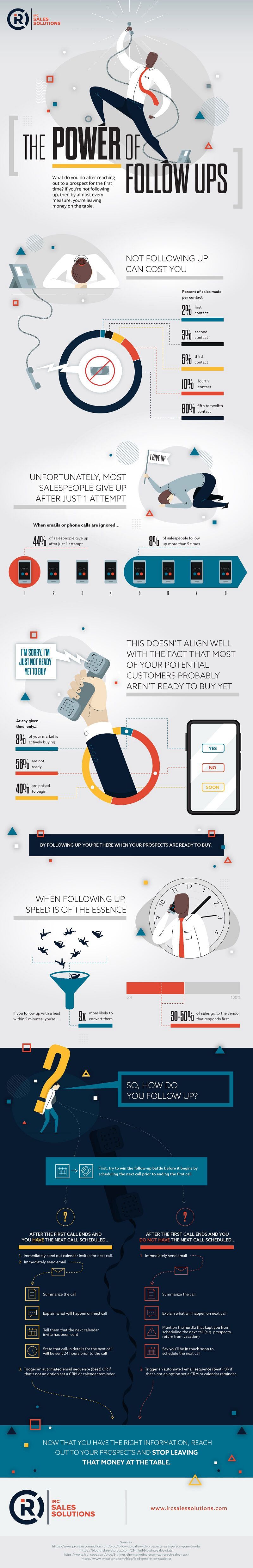 Many salespeople give up after their first attempt at reaching out to prospective clients. Few will follow up, and even fewer will follow up multiple times, even though it often takes several follow-ups to make a sale.