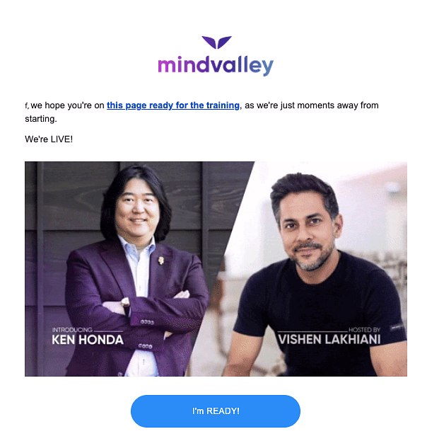 Another example is your webinar email flow. You can send a reply to people who didn't attend the webinar or dropped off in between. And you should send webinar reminders to people who registered and not everyone. Mindvalley uses this technique to send reminders and reply emails: