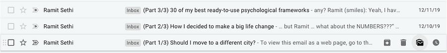 Example of open loop at the end of emailHere are three emails in a three part series: