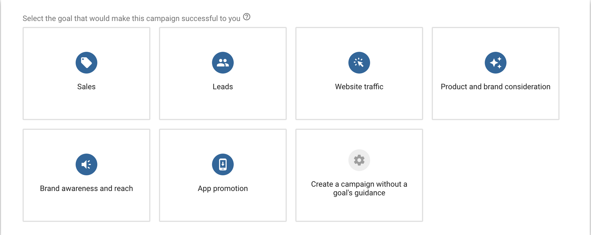 The first thing that Google asks while doing your Ads, is to select your Campaign Goal.