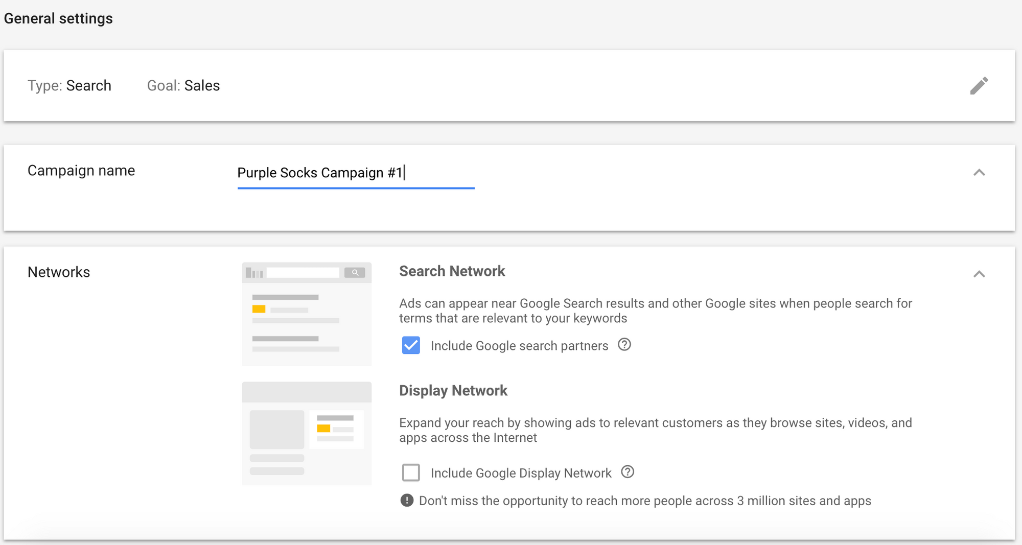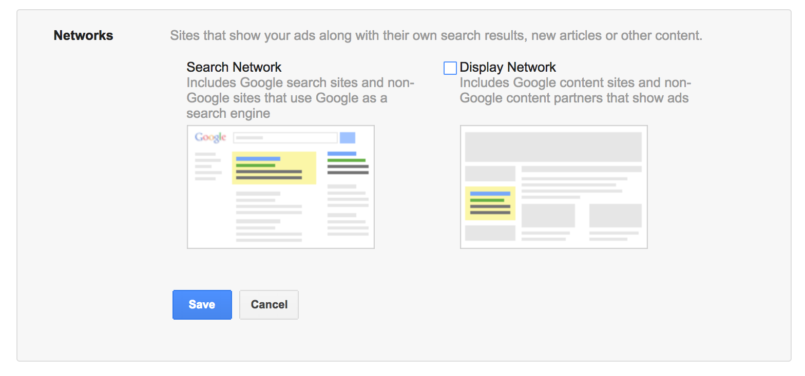 Give your campaign an appropriate name. And uncheck the box next to Google Display Network. This is because we’re currently focusing on Search only. After you’ve got some results with that, feel free to expand to the GDN.