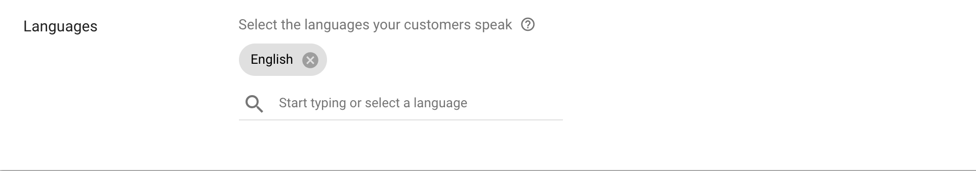 Next up, select the language spoken by your customers. In this case, we’ll select English.