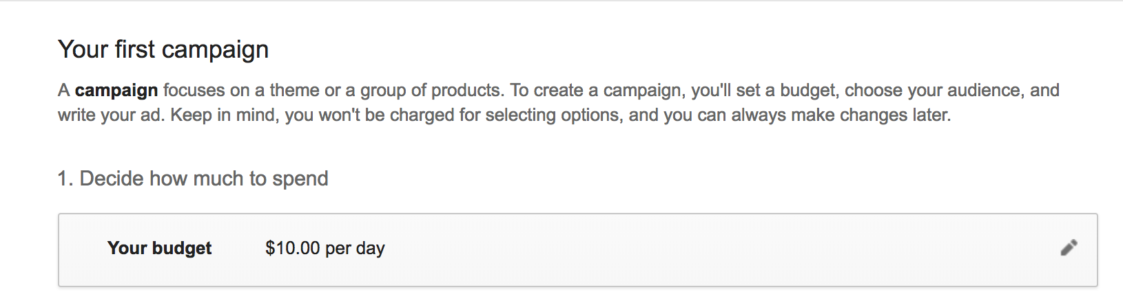 Or you can just get started with a $10/day budget and modify it as you go along.