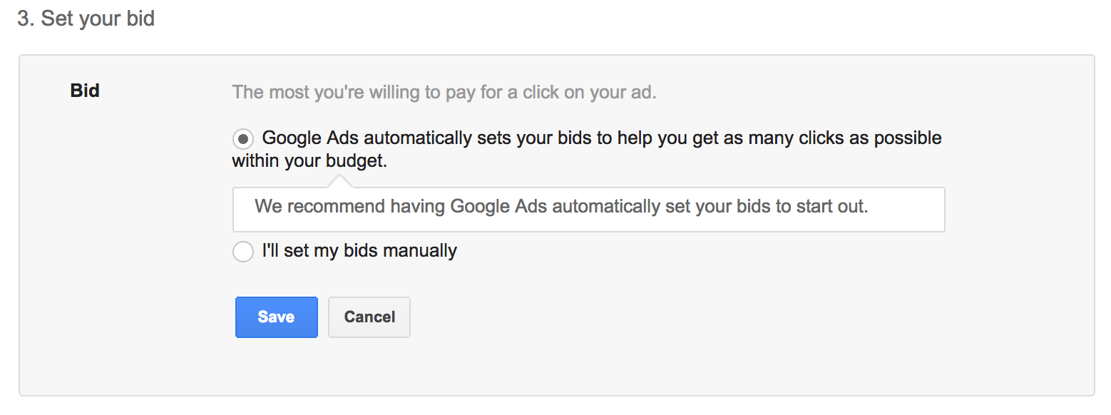 You choose your bidding strategy, and place a bid (preferably higher than your competition). Following which you create your ad and submit it to Google to get you more visitors with buying intent!