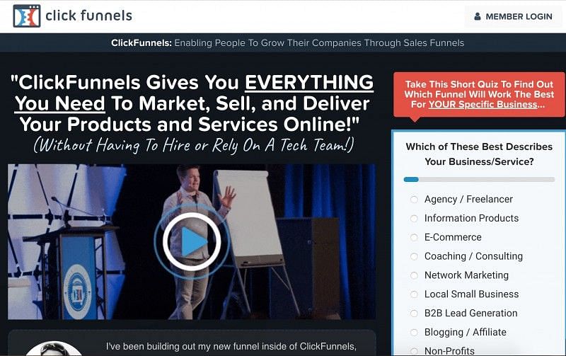 The following is the beginning of the landing page that we're taken to when we click on the Google Ad for ClickFunnels.
