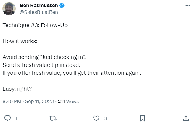 Jason Zook, the founder of Wandering Aimfully, says, “For years, I’d been doing something that just came naturally to me when sending sales or pitch emails. That thing was sending a follow-up email. And I recently realized that more than 75% of the 2000 deals I’ve landed have come from sending follow-up emails.”