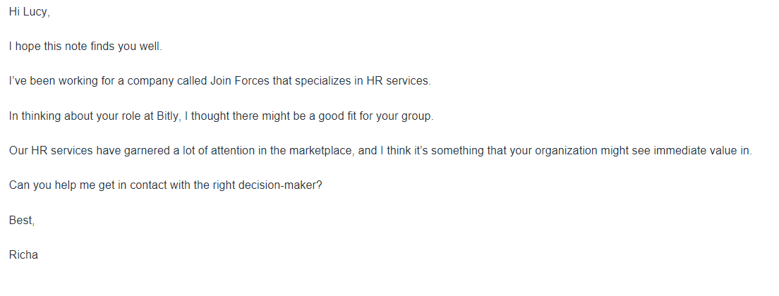 People no longer like responding to emails that seem generic. Take a look at this email.