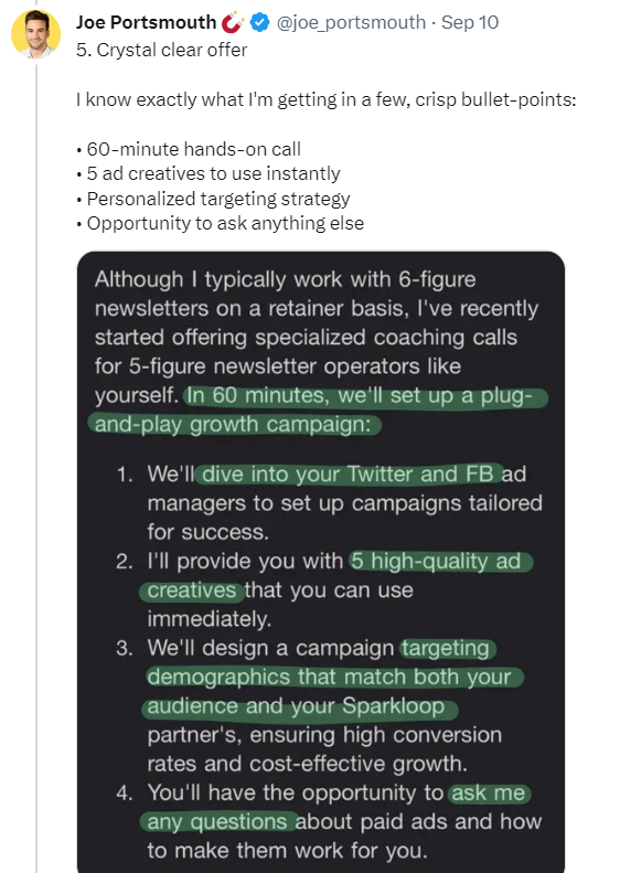 This shows they have done the research, and they also put forward a tangible benefit like “helping understand customer experiences” instead of loosely throwing around words like growth and revenue.