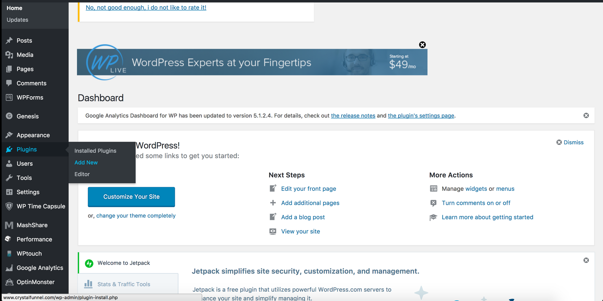 Go to your WordPress Dashboard, then click Plugins > Add New from the left sidebar.