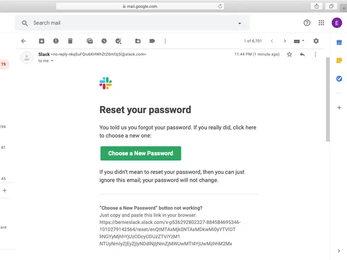 Let’s take a look at how Slack does it. Most Slack users remain logged into the application. However, when there is a need to reset the password, Slack sends this transactional email to the user.
