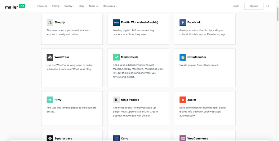 MailerLite integrations are not the same in number as Mailchimp integrations (two hundred and twenty-four), but MailerLite does have quite a few integration options, and it let you have access to the developer API so you can integrate with other apps.