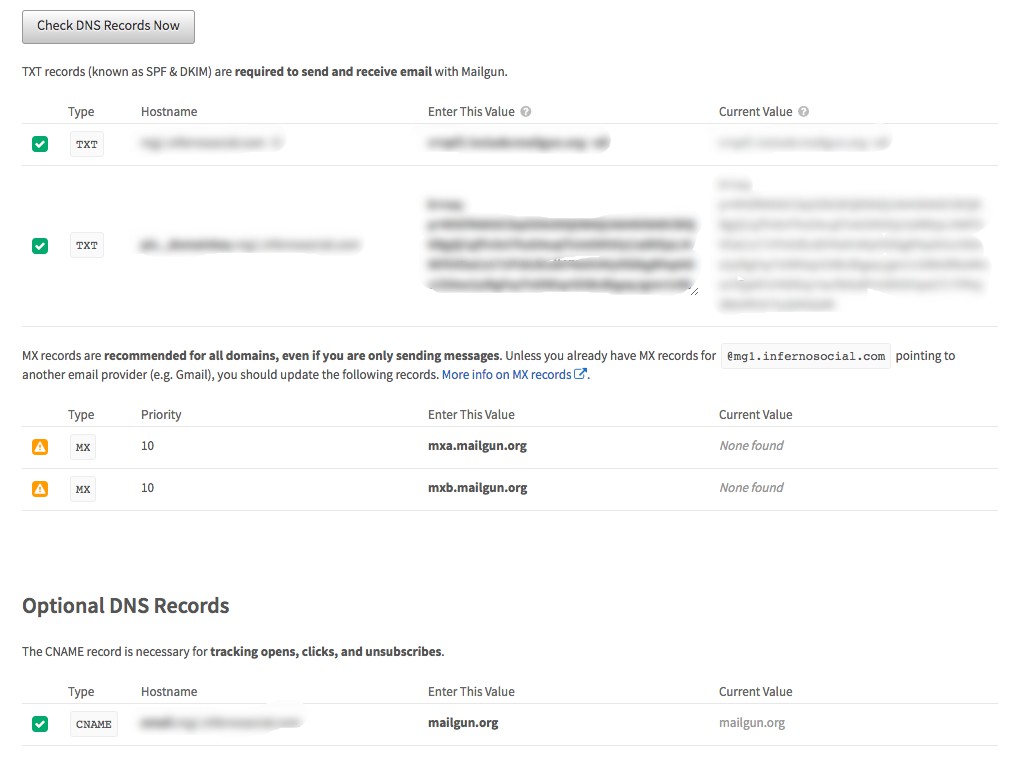click on "Check DNS Records Now" button in the same section. This step can take a while since the DNS records take a few minutes to hours to validate across the internet.