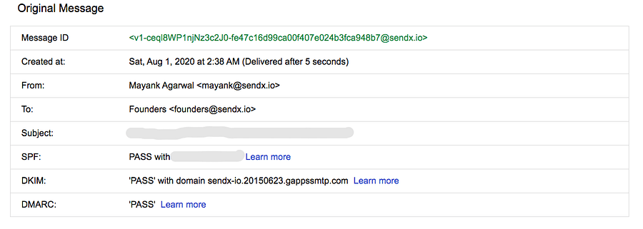 Now, DKIM passed with the domain sendx.io instead of google.com. If you look back at the previous screenshots, DKIM had passed earlier, but with the domain google.com.