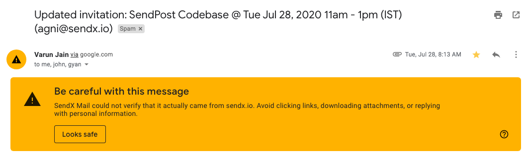 Our domain sendx.io was set up four years ago, and we have been using GSuite to communicate within the team. We never expected our emails to land in the spam box.