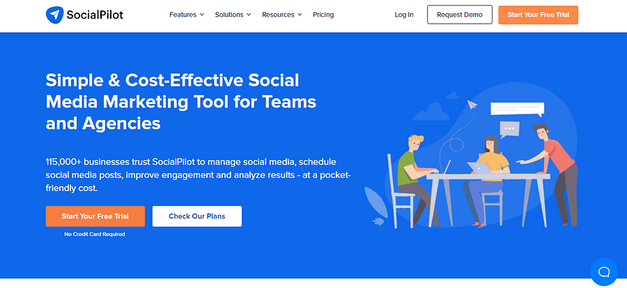 Priced starting with an annual plan at as affordable as $7.49 per month per 1000 subscribers, SendX also provides access to 50+ free premium responsive email templates for a variety of use cases and industries.So what are you waiting for? Try SendX now for a 14 day trial (no credit card required).7. VismeVisme is one of the sought-after cloud-based platforms for remote work in 2024 that strengthens cohesive team building and effective communication. With its user-friendly and interactive interface, new hires on your team can quickly grasp this Visme for creating stunning visual content.Integrate Visme into your CRMs to have seamless teamwork. Its collaborative features bring remote team members together in real-time. You can keep your brand assets within Visme’s Brand Kit, and your teams can collaborate. Share your Visme project on your Slack channel, or any other management tool for efficient workflows.Teams can collaborate on any visual content project for website or app prototyping, social media, email marketing, or business branding in general. This keeps your whole team in the loop by sharing updates and notifications on your projects from the Visme brand kit. Your team can comment on or resolve any issues on your project in real time.Visme’s top-notch features aim to improve the team’s productivity, cooperation, and collaboration. Get access to thousands of templates within Visme’s dashboard without needing to start your design work from scratch. Smaller teams can leverage its pro plan and get access to everything needed to operate a remote team. With its AI-powered features, Visme allows businesses to focus on improving business branding easily, and efficiently. The best thing about Visme is, that it has a low learning curve which makes it one of the best tools for remote working. Visme’s customer care center provides 24*7 support ensuring great user experience. Try Visme now for a memorable experience.Visme has got premium plans.FreeStart plan at 12.25$ per month (paid manually)Pro plan at 25.75$ per month (paid manually)Enterprise plan has custom pricing8. SocialPilotFinding a simple & cost-effective social media management tool for small teams and agencies that help them to strengthen their brand presence across all major social media platforms is never easy.With SocialPilot, you can publish content on LinkedIn, Twitter, Instagram, TikTok, Facebook, Pinterest, Google My Business, Vk, and Tumblr. It is popular among small businesses because of its cost-effectiveness, intuitive UI, and exceptional customer support. It also assists you in creating, plan, schedule quickly, and publish posts.