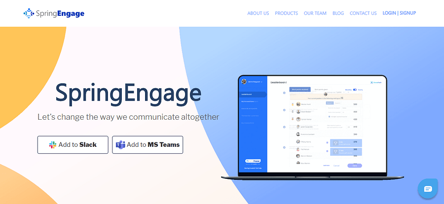 Ameyo offers custom pricing plans that would cater to your specific business requirements.21. SpringworksStudies show that businesses with the highest levels of employee engagement are 22% more profitable than those with low levels of engagement. Employee engagement affects just about every important element of an organization — profitability, revenues, client experience, employee turnover, talent acquisition, brand presence, market share, and workplace safety.Springworks helps achieve just that: high employee engagement levels. It provides remote working tools which enable talking with teammates, interacting with them. And celebrating should have no boundaries, no matter where you are.Springworks SpringEngage provides employee engagement that's seamless and recognition that's boundless.