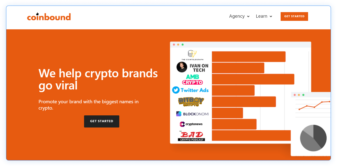 Coinbound is another crypto digital marketing business with offices in New York and Los Angeles. OKEx, ShapeShift, and eToro are just a few of the companies that have partnered with this crypto marketing agency. The firm has a strong track record of successful marketing campaigns and exceptional profits for its service users.