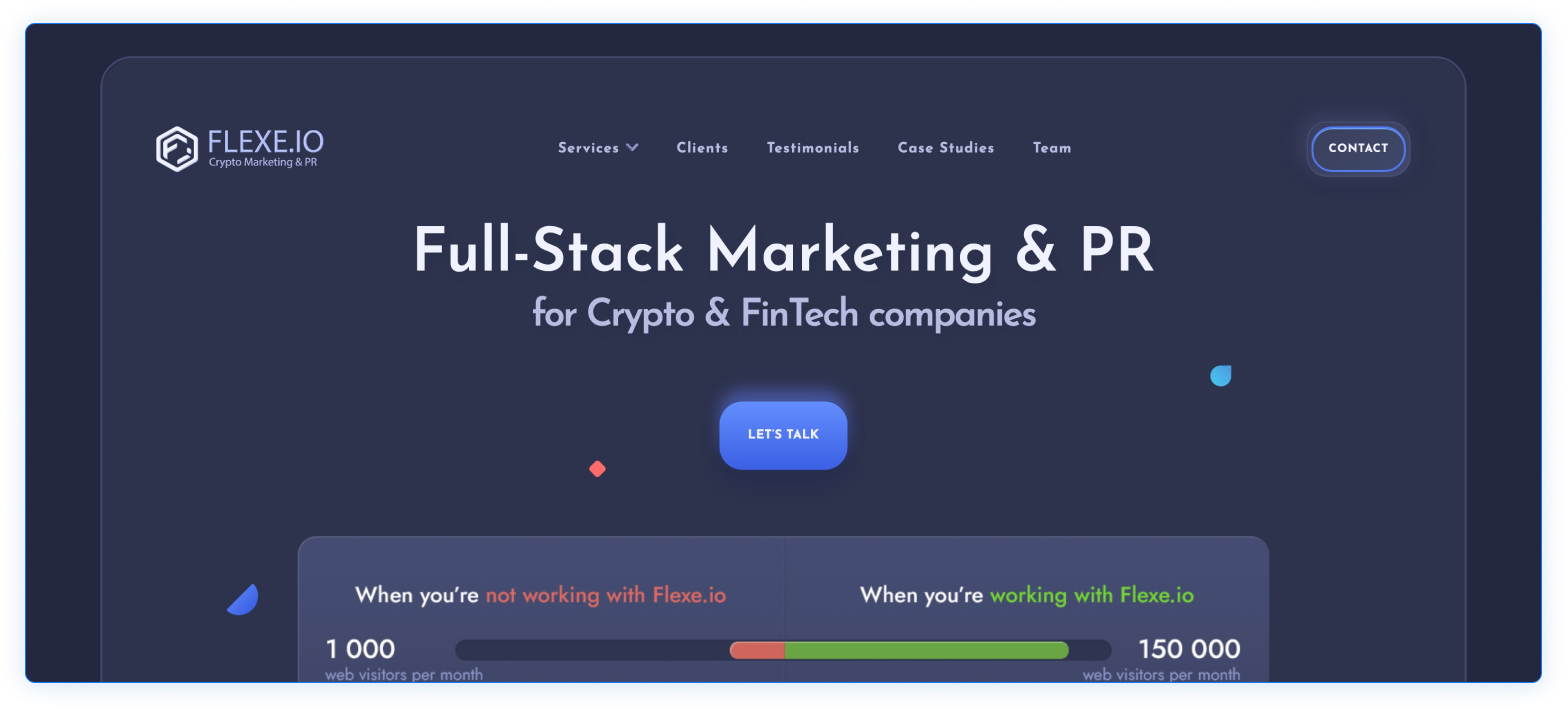 Flexe.io started operating in 2018 and, in a short period of time, has handled both simple and advanced projects, and made its way to the top blockchain marketing firms. Their fast yet quality-based services are why they stand out from the rest of the crypto marketing agencies. Flexe.io claims to deliver online visibility to its clients through collaborations with media powerhouses in the fintech field such as Yahoo Finance and Cointelegraph.