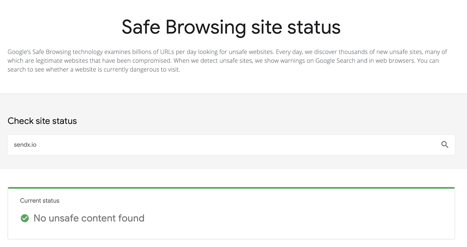 Lastly, make sure your domain isn’t marked as unsafe with Google Safe Browsing. It’s a regular check you can do every month or every two weeks as site safety can change over time.